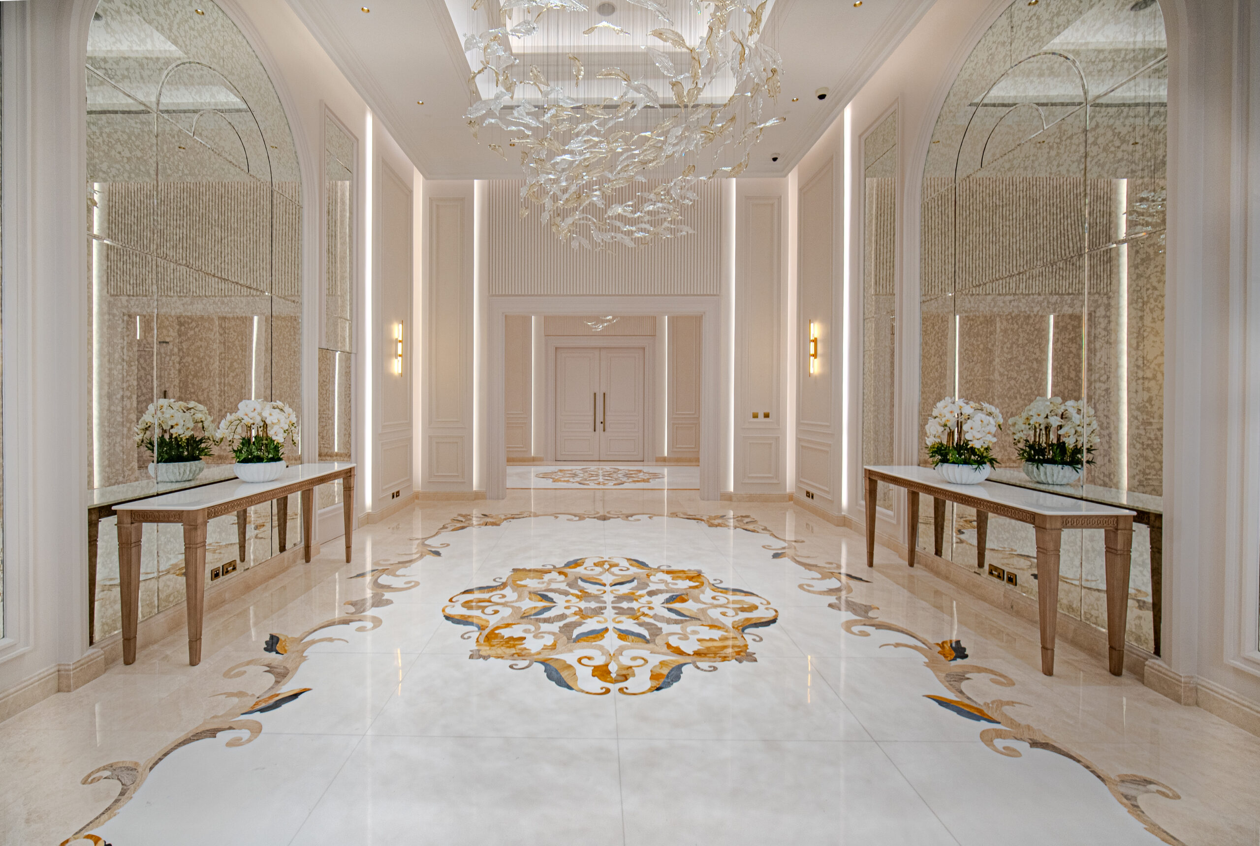 A classical lobby that welcomes with grandeur and grace, featuring elegant finishes, balanced proportions, and a timeless ambiance that leaves a lasting first impression.